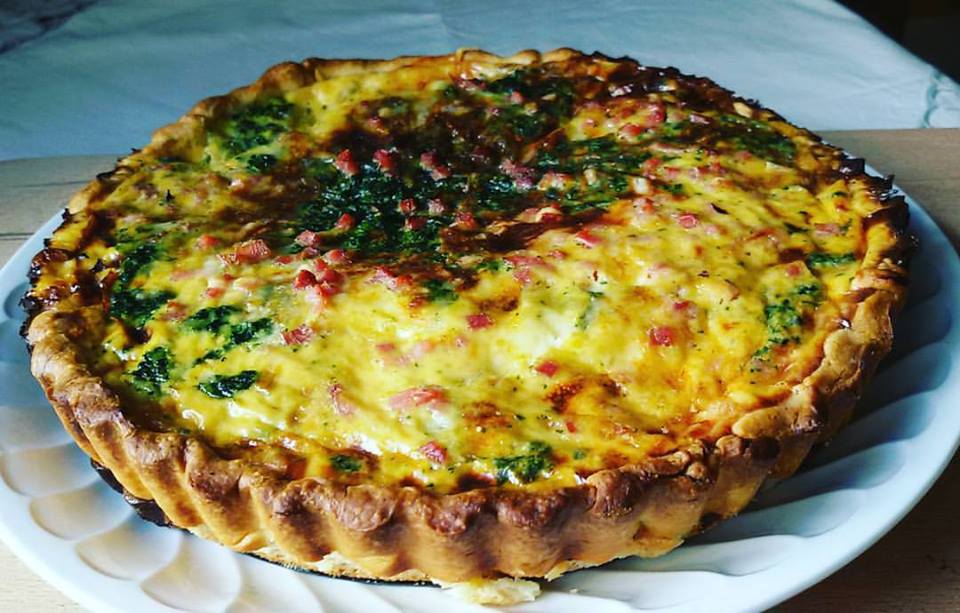 Y para terminar te voy a dejar este rico pastel salado. Es una Quiche de espinacas con jamón. Se hornea en un molde de quiche una lamina de masa quebrada. Mientras, se prepara un relleno con leche evaporada, queso, espinacas, jamón, huevos y un poco de maizena. Se baten todos los ingredientes. Una vez horneada la masa, se llena con la mezcla y se lleva al horno para que se cocine. Una vez dorado el pastel, ya está listo para servir. Te aseguro que no dejarán ni las migas. También con vídeoreceta para que veas cómo lo preparo yo.